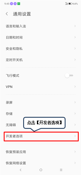 4、返回【设置】界面点击【通用设置】,点击【开发者选项】,点击右上角开关开启开发者选项,点击【USB调试】右侧开关亮色为开启状态,反之为关闭。
