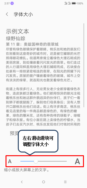 4、可滑动滑块,根据自己使用要求对系统字体大小进行设置。