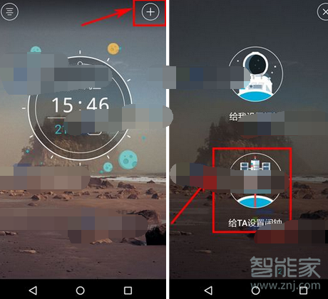 1、打开火箭闹钟,点击右上角的【按钮】,然后点击下方的【给TA设置闹钟】。