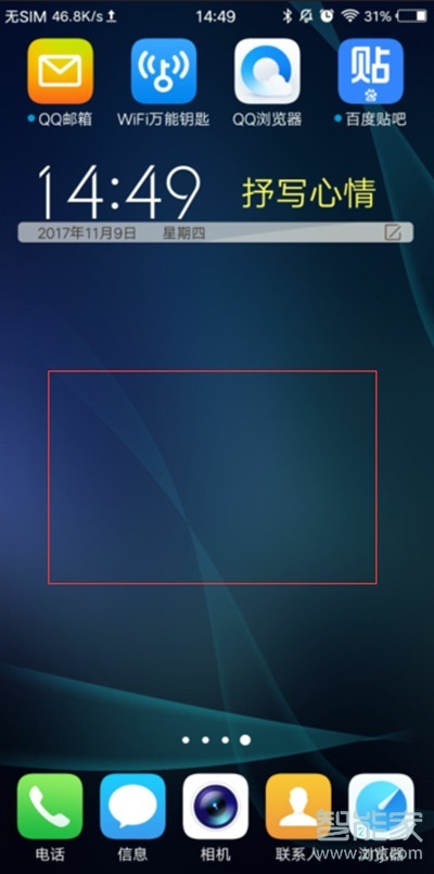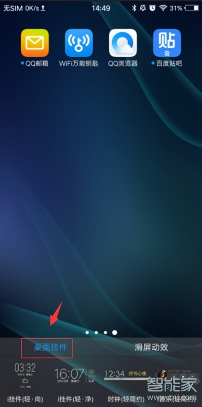 1、待机桌面长按空白处。