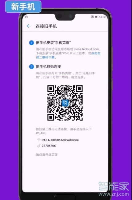 4、在旧手机上,点开【手机克隆】->【这是旧手机】,会出来扫描二维码的页面,用旧手机扫描二维码,按照指导,手机连接成功。