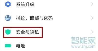 2、然后往下滑动,找到“安全与隐私”并点击进入。