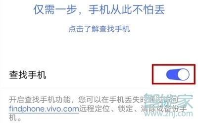 4、将查找手机右侧的开关拨动到右边,即可打开查找手机功能。