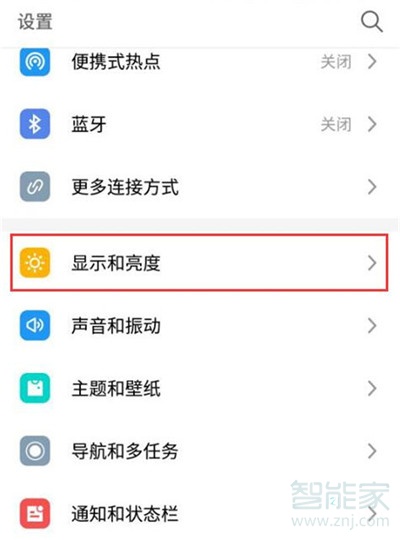 2、在设置界面下拉,找到【显示和亮度】选项,点击进入。