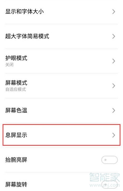 3、下拉界面,找到【息屏显示】选项,点击打开。