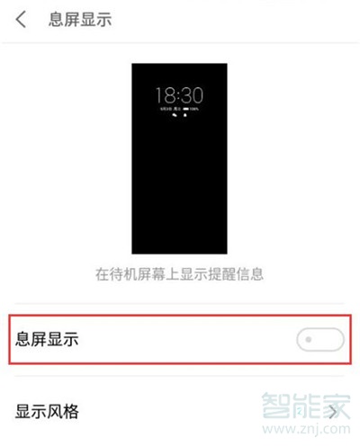 4、打开【息屏显示】开关,设置好之后在待机屏幕上会显示时间和提醒信息。
