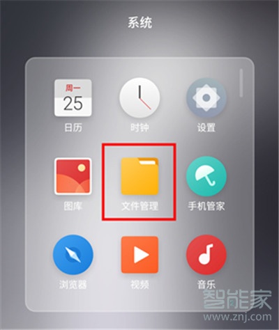 1、在手机桌面找到【文件管理】的菜单图标,点击进入手机文件管理。