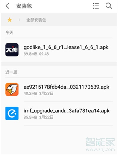 3、手机上下载然后未删除的安装包就全部在里面了。
