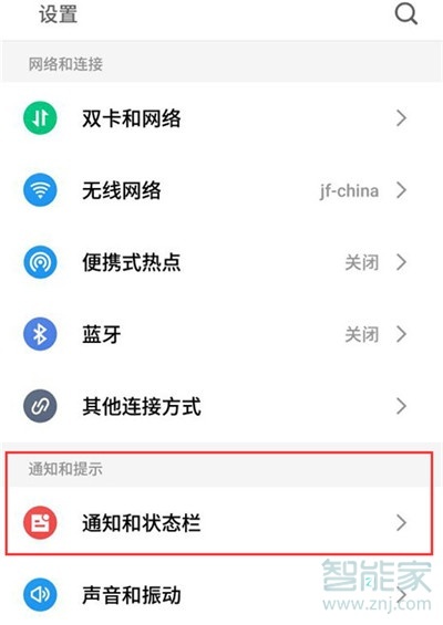 2、在设置界面,找到并点击打开【通知与状态栏】选项。