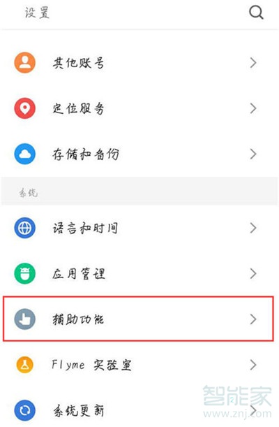 2、进入设置界面后,下拉选择【辅助功能】选项,点击打开。