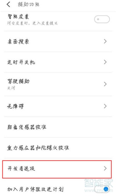 3、在辅助功能界面,我们接着操作,找到【开发者选项】,点击进入。