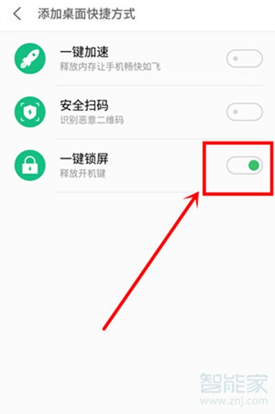 4.在转入界面中将【一键锁屏】右侧的开关打开。