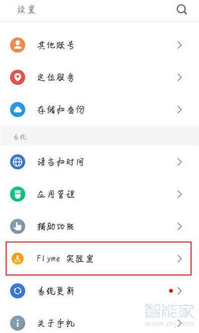 2、打开设置之后,下拉界面点击打开【flyme实验室】