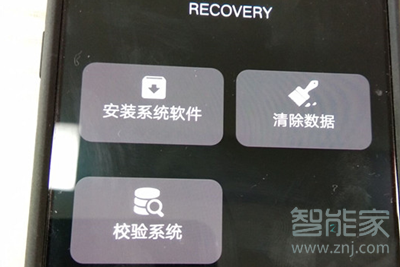 2、然后您可以在Recovery界面选择安装系统软件、清除数据(双清)或者校验系统。设置完毕后选择关机或重启即可生效。(直接用手指触屏点击即可操作)