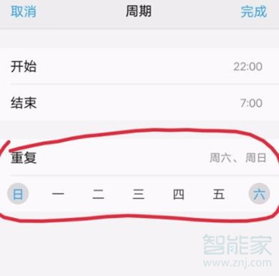 5、当然,可以设置一周的日期,比如周六周日不想让人打扰,那么把双休日开启。这样到了工作日自己就会关闭