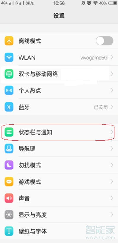 2、进入设置以后,找到”状态栏与通知“一项,点击进入。