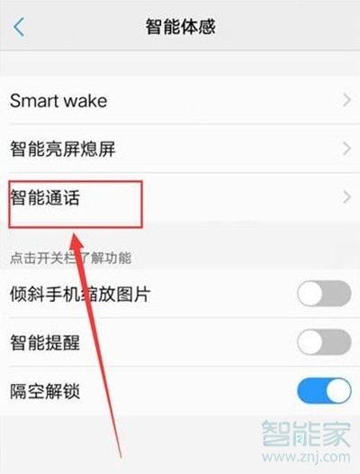 3、进入【智能通话】之后,找到【捂住屏幕静音】
