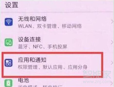 2、进入设置页面后,找到并点击打开【应用和通知】。