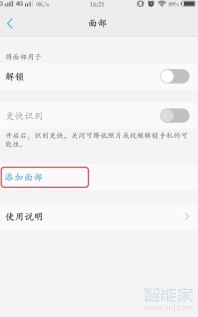 5、在这里我们点击“添加面部”的按钮目前我们仅可添加一个人的面部资料,也就是说,只能识别一个人