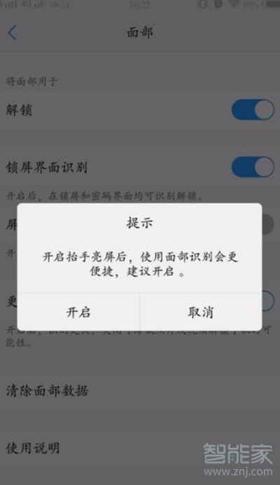 8、收集面部资料成功后会提示是否开启抬手亮屏一般是拿起手机就可以解锁,没有多余的操作这个看你自己的情况开启,还是挺方便的