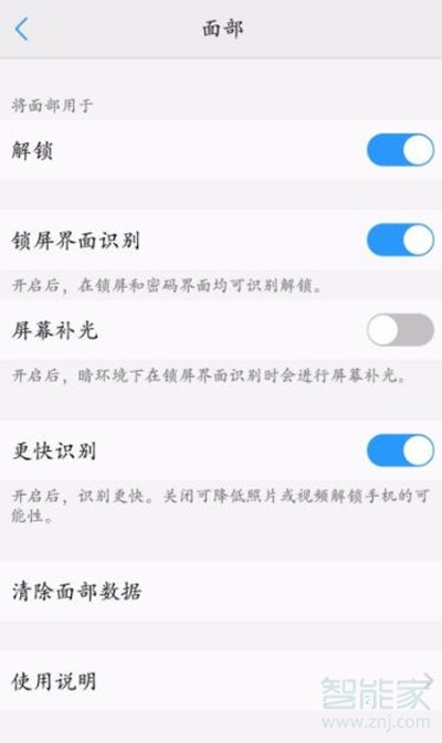 9、当然,设置成功后你也可以在这里清楚面部资料建议打开快速识别的更能,会让解锁更加的流畅当然,安全性可能会降低