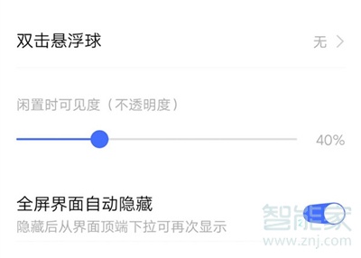 4、您还可以对悬浮球本身进行设置——双击悬浮球执行快速指令;调整悬浮球的不透明度以及开启“全屏界面自动隐藏”功能。