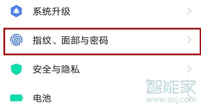 2、手指往下滑动,然后点击【指纹、面部与密码】。
