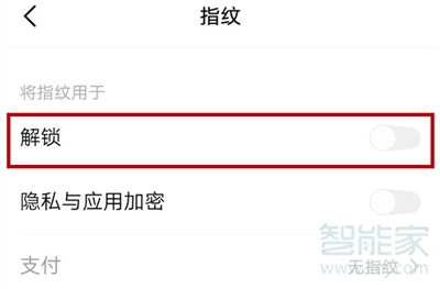 4、输入密码并通过之后进入指纹设置界面,将【解锁】开关按钮拨动到右边。