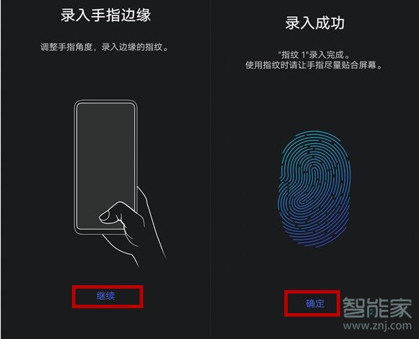 6、最后再录入指纹边缘,按照提示录入完成,最后点击【确定】就能使用指纹解锁了。