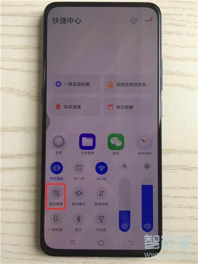 1、上拉手机底部,调出快捷菜单栏,点击【超级截屏】。