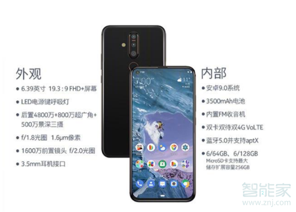 核心配置上,诺基亚X71正面使用6.39英寸点睛屏,屏占比达93%,四周边框进一步收窄,更有PureDisplay技术加持,屏幕颜色更加饱满,影音娱乐沉浸感更强;搭载高通骁龙660处理器,辅以6GB+64/128GB两种内存组合;内置3500mAh电池,支持18W快充。另外,诺基亚X71将电源键和呼吸灯相结合,白色呼吸灯效让手机更动感。