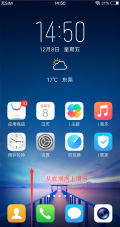 vivoy91怎么关闭屏幕自动旋转1.打开vivoy91手机,在手机桌面最底端往上划,之后会弹出一个菜单栏,下排的就是相当于手机的快捷菜单之类的。