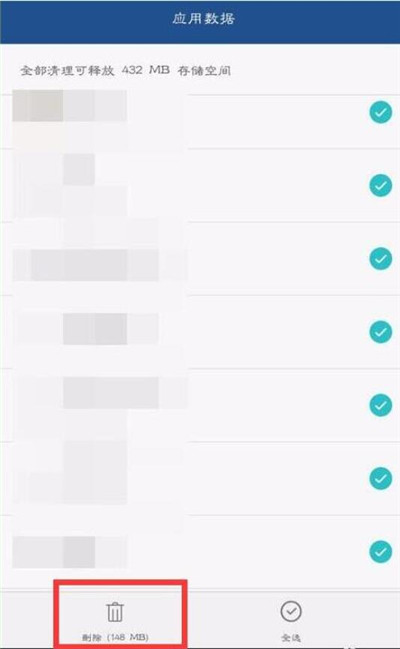 4、点击【一键清理】,这样可以删除部分应用缓存。