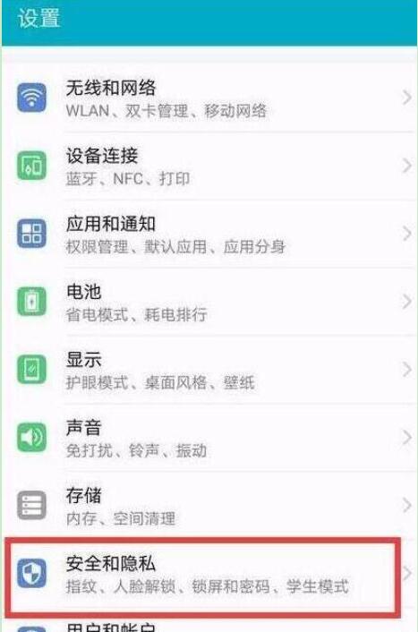 2、进入设置菜单后,点击打开【安全和隐私】。