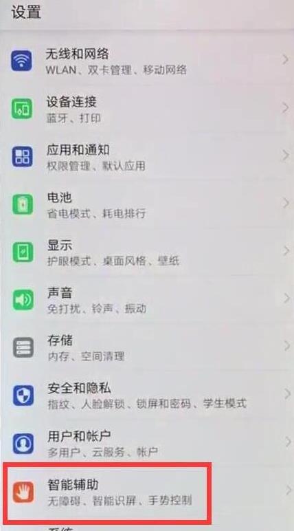 2、在设置菜单下点击进入【智能辅助】。