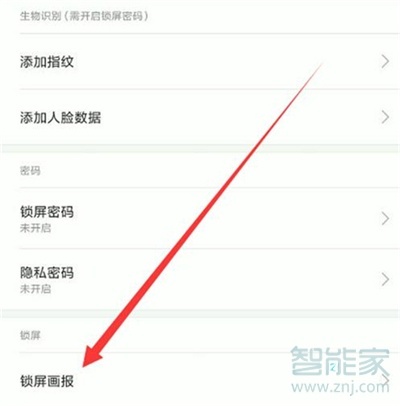 3.进入到锁屏、密码和指纹界面,然后点击【锁屏画报】选项。