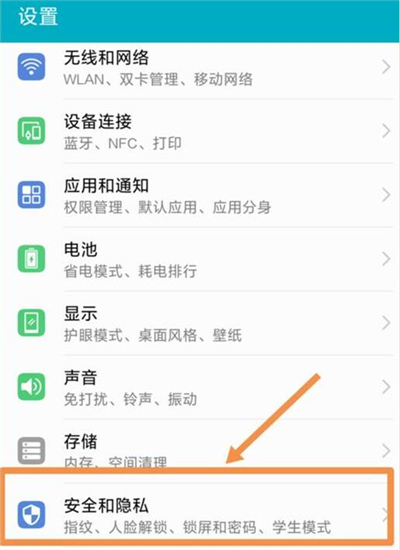 2、在设置菜单中下滑找到【安全和隐私】选项点击进入,