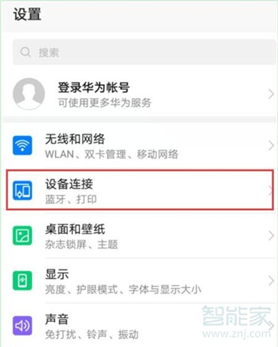 在设置选项界面,点击进入【设备连接】选项,