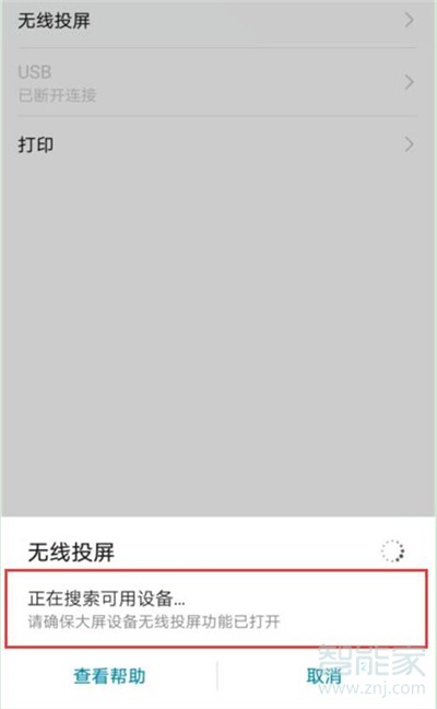 接着点击【无线投屏】功能选项,之后会自动搜索可用设备,