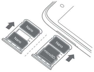 3. 将卡座插回手机侧面的插槽中。(拆卸存储卡前,请先关机,否则可能引起传输至手机的文件丢失,或导致手机出现异常现象,无法正常工作。)