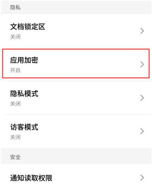 5.最后开启【应用加密】后面的开关,然后选择需要设置加密的应用即可。