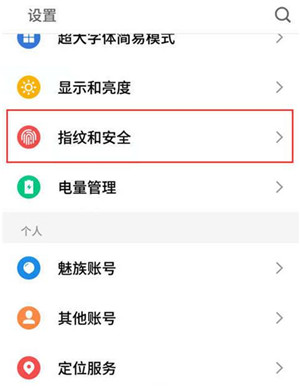 2.进入设置选项之后,找到【指纹和安全】点击打开。