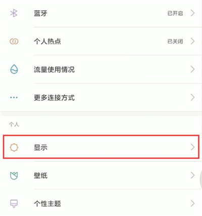 进入设置之后,在设置界面找到【显示】选项,点击打开