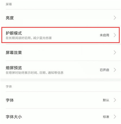进入显示选项之后,点击打开【护眼模式】,进入护眼模式的设置菜单中