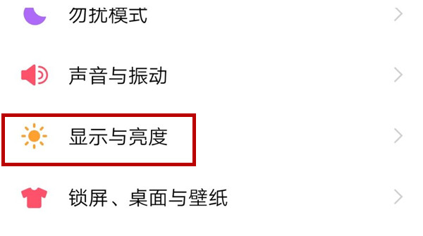 2、然后往下滑动,找到“显示与亮度”并且点击进入。
