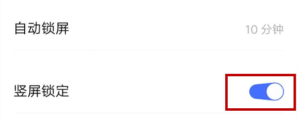 3、再将竖屏锁定后方按键往右拨动至蓝色可以开启竖屏锁定;而如果将按键往左拨动至灰色的话可以关闭竖屏锁定,让屏幕自动旋转。