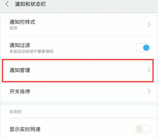 第三步:点击【通知管理】选项,如果是正在通知栏的通知,直接长按该消息也可以直接进入该应用的通知管理,