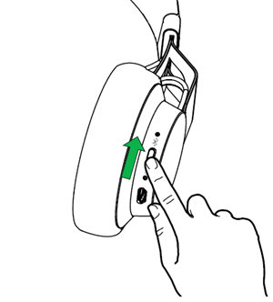 2.将jabra move耳机的电源开关拨到蓝牙配对档位,并按住 3 秒钟,直到在耳机里听到进入配对模式的提示,而且蓝牙指示灯将闪烁蓝色。