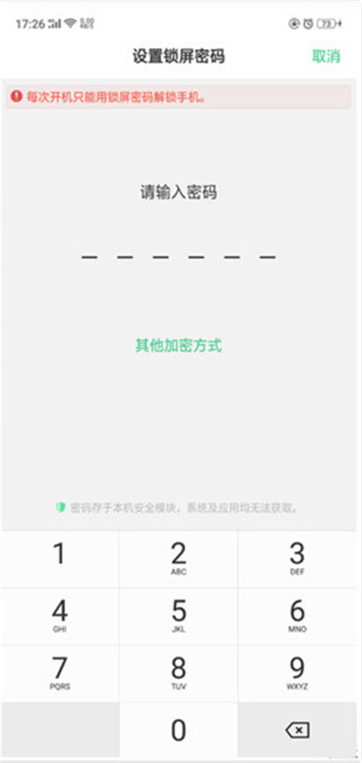 3、输入你想要设置的密码数字,即可完成锁屏密码设置。