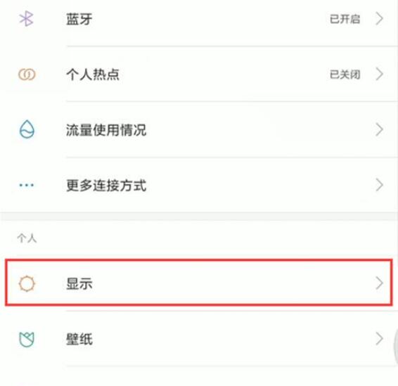进入设置之后,在设置界面找到【显示】选项,点击打开,